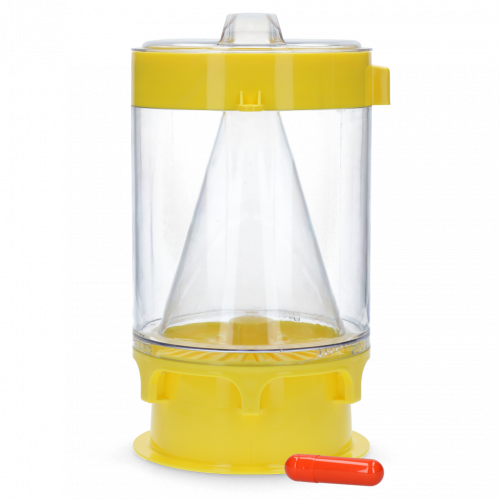 Het speciale deksel op het lokmiddelreservoir zorgt voor gedoseerd vrijlaten van de FlyNip. De unieke constructie van de val in combinatie met de luchtstroming zorgt dat de vliegen gescheiden worden van het water met de lokstof, zodat hierop geen eitjes kunnen worden gelegd.