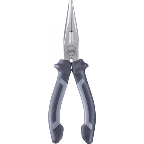 Tang, vorm volgens ISO 5745, rechte vorm, CV-staal, satijnmatte afwerking, afgeplat ronde bek met getande grijpvlakken, 2 componentengreep voor een optimale krachtoverdracht en meer comfort tijdens het werken, snijkanten gehard, geschikt voor het vastgrijpen en snijden van kleinere voorwerpen. Met handige tanghouder voor de werkplaats: de kunststof clip wordt gewoon op de gereedschapswand geschroefd.